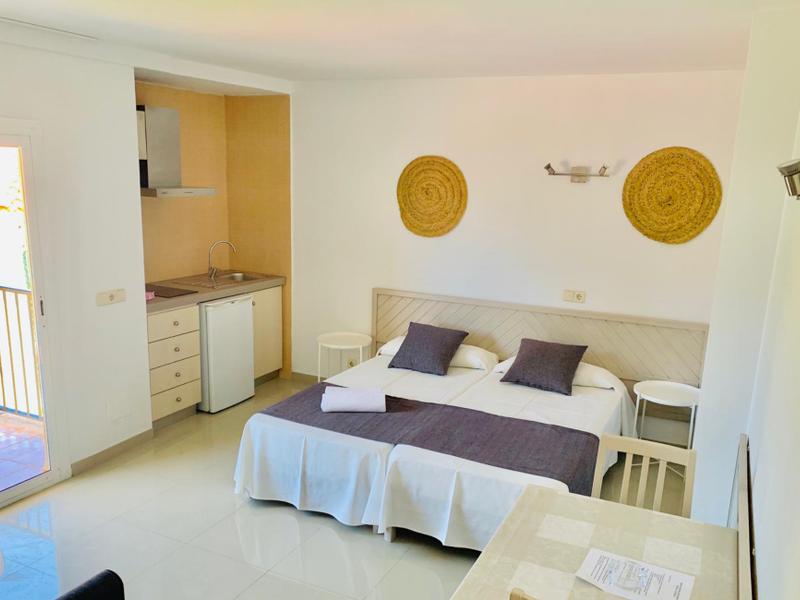 Estos amplios espacios de (15 m²) cuentan con dos camas individuales y cocina equipada con fogón, nevera, utensilios y tetera o cafetera, además de balcón y terraza. Es un lugar ideal para consentirte, rodeado de buen gusto y servicio de primer nivel, mientras disfrutas de una magnífica estancia en Cala Rajada.